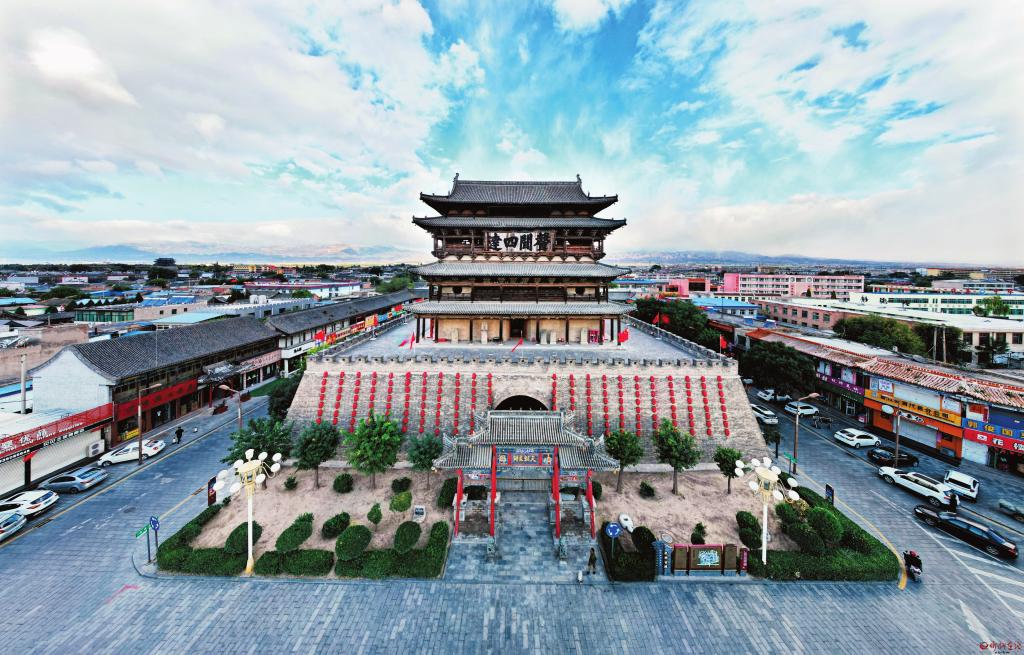 雁門關、寧武關、偏頭關,是山西內(nèi)長城的三關。其中雁門關地處要沖,歷來是長城內(nèi)外兵家必爭之地。代縣古城因雁門關而生,因雁門關而聞名,城外有三十九堡十二聯(lián)城,城內(nèi)有關城、甕城,以及城墻上的十二座門樓、角樓,再加上城中的鼓樓、鐘樓,由此構(gòu)筑成龐大的軍事防御體系。邊靖樓地處古城中心,是整個三關防御體系的核心指揮部,這也正是一個州治所在地的鼓樓規(guī)模遠遠超過京師鼓樓規(guī)模的重要原因。