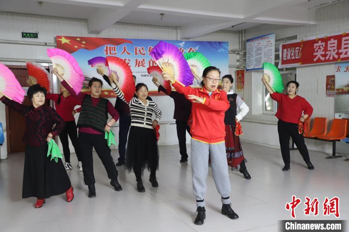 圖為孫立君指導學員二人轉(zhuǎn)轉(zhuǎn)手絹動作。 曾令剛 攝
