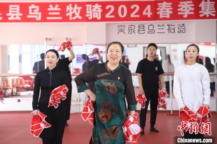 圖為孫立君(左二)與烏蘭牧騎隊員進行排練。 曾令剛 攝