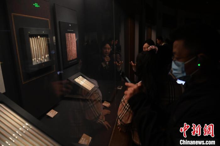4月16日,甘肅省博物館鎮(zhèn)館之寶漢代《醫(yī)藥木簡(jiǎn)》吸引參觀者駐足參觀。李亞龍 攝