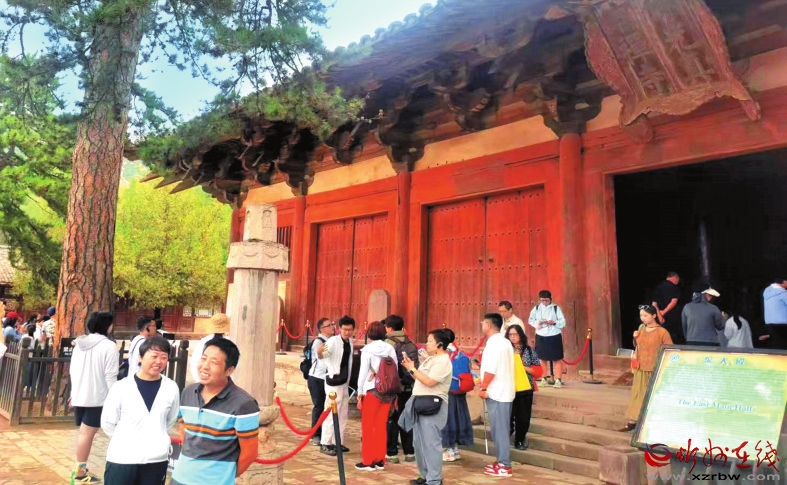 作為游戲場景現(xiàn)實取景地之一的五臺山佛光寺,近日迎來了眾多游客,他們饒有興致地欣賞這座保存完好且精美絕倫的古建筑,感受游戲中忻州元素的真實可靠。 龐麗芳 攝
