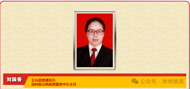 作為徐向前元帥故居服務(wù)中心主任,劉國香以徐向前元帥紀念館為基點,常態(tài)承擔(dān)忻州籍新兵入伍役前教育思想政治課,傳承紅色基因,賡續(xù)元帥家國情懷。依托故居資源,開展黨史、軍史、國防教育,組織宣教活動年均30余場,2萬余人次受教育,獲得“山西十大品牌紅色教育基地”等10余項榮譽。創(chuàng)新國防教育,開發(fā)4大系列7類微黨課,其中《感悟徐帥品格》獲山西省軍區(qū)政治教員比武一等獎。帶領(lǐng)宣講團走進軍營,為駐地官兵、集訓(xùn)民兵舉辦7場專題演出。走出山西,深入學(xué)校、機關(guān)及學(xué)校,開展多場主題宣講活動,推出專題視頻、情景劇《情歸故里》巡演20余場。2024年征集徐向前元帥及相關(guān)革命文物6402件(組),并赴多家文博單位調(diào)研優(yōu)化藏品管理。2025年成功舉辦捐贈儀式,進一步豐富紅色資源儲備,填補多項歷史空白,策劃《歷史的回顧》主題朗誦會,讓徐帥戰(zhàn)斗日記在空軍軍營回響。2025年10月,該同志被評為山西省國防建設(shè)先進個人。”