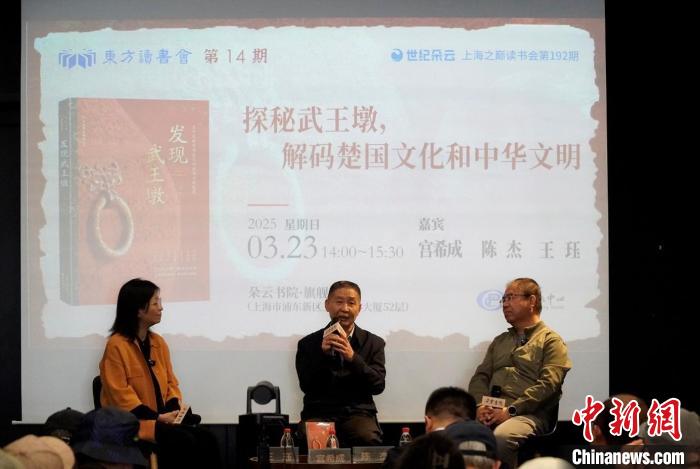 中新網(wǎng)上海3月24日電 (記者 王笈)由東方出版中心主辦的東方讀書會之“探秘武王墩,解碼楚國文化和中華文明”23日在上海舉行,圍繞《發(fā)現(xiàn)武王墩》一書以及武王墩墓的發(fā)掘進(jìn)展、出土文物等話題展開精彩對談。