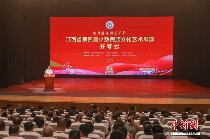 中新網(wǎng)江西于都9月24日電 (劉力鑫)23日晚,江西省第四屆少數(shù)民族文化藝術(shù)展演在贛州于都縣開幕。國家民委副主任、黨組成員郭衛(wèi)平出席開幕式,江西省政府黨組成員陳小平致辭并宣布展演開幕。