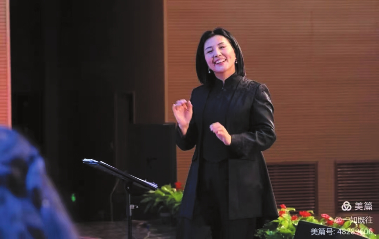 趙桂珍老師身著正裝,目光灼灼,舉手投足間盡顯專業(yè)風(fēng)范。抬手示意預(yù)備,她的動作行云流水、起收自如,每一個(gè)指揮手勢、每一種情緒表達(dá)都極具感染力。成員們層次豐富的和聲如溪流匯聚,奔涌向前,從《九兒》的如泣如訴到《壯美延安》的恢宏壯闊,深情的余音未散,鏗鏘的旋律已奔涌而至。隨著最后一個(gè)音符落下,臺下掌聲久久不息。