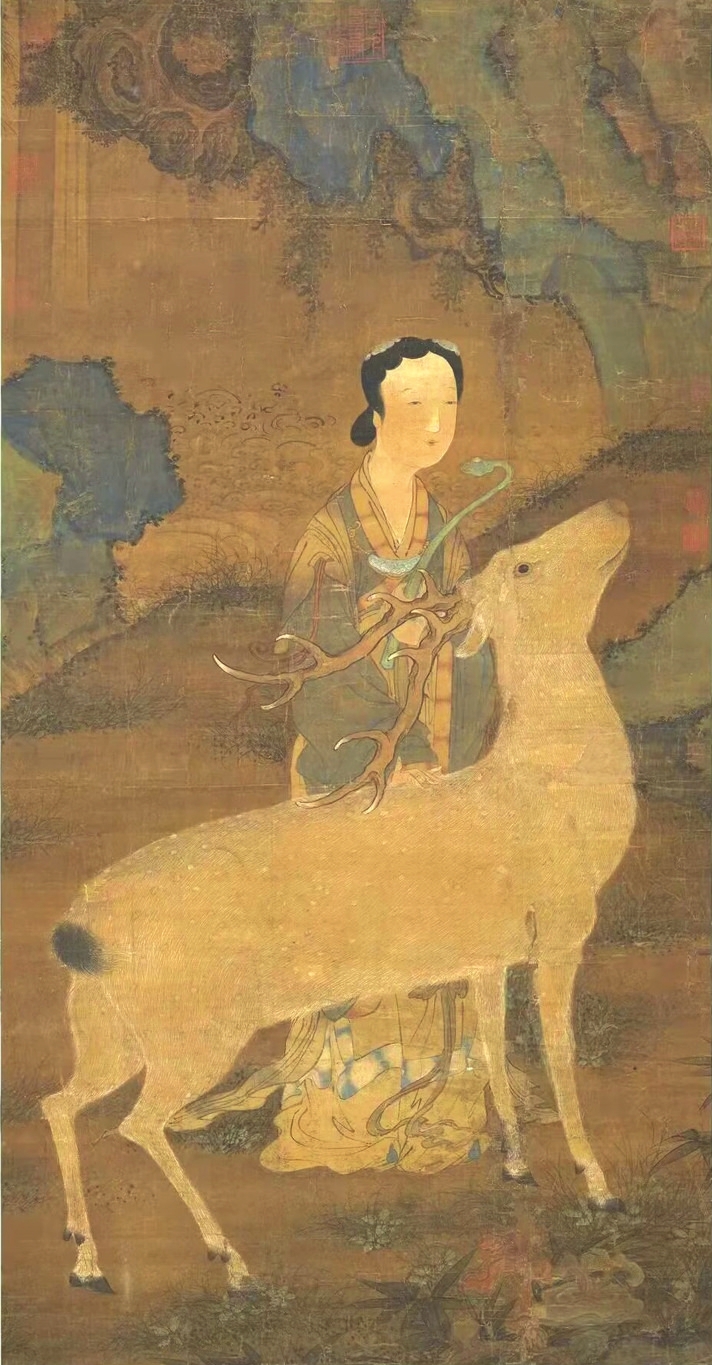 在傳統(tǒng)文化中,鹿是一種有神力的動(dòng)物,神話傳說(shuō)中鹿往往是神仙的坐騎。李白一生尋仙問(wèn)道,其《夢(mèng)游天姥吟留別》中有“且放白鹿青崖間,須行即騎訪名山”之名句。南極仙翁的白鹿,不僅被繪制在壽畫里,在文學(xué)中也大放異彩?!段饔斡洝分械陌茁咕褪菈坌悄蠘O仙翁的坐騎,偷得壽星的蟠龍拐杖后下凡為妖。在《白蛇傳》里,白娘子獨(dú)闖昆侖山,欲盜取起死回生的靈芝仙草,遭遇鶴、鹿二仙童阻攔。清代神魔小說(shuō)《女仙外史》中的鹿童化為道人,下凡后為禍人間。屢破票房紀(jì)錄的動(dòng)畫電影《哪吒2》,其中的反派之一鹿童,是無(wú)量仙翁的大弟子,擔(dān)任捕妖隊(duì)頭領(lǐng),戲份頗重。