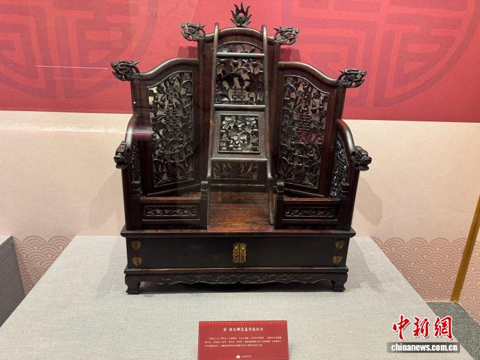 2月12日,“丹宸國(guó)色——沈陽故宮博物院建院百年新春特展”在沈陽故宮開展。圖為展覽中展出的清硬木雕花喜字梳妝臺(tái)。中新社記者 韓宏 攝