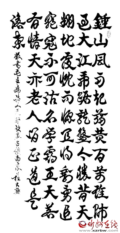 中國書法家協會榮譽主席沈鵬老師點評中指出:面對一幅好的作品,首先受到感染的是它的色澤,紙墨、印泥、印章的質量,觀程大凝作品給我印象非常深刻,尤其是他在書法中自由變換的風格,從大處著眼,整體的布局美觀;從小處琢磨,點畫筆法非常優(yōu)美;從字里行間看硬直而剛,軟曲而柔,豐厚而腴,給人一種身臨其境的感覺。