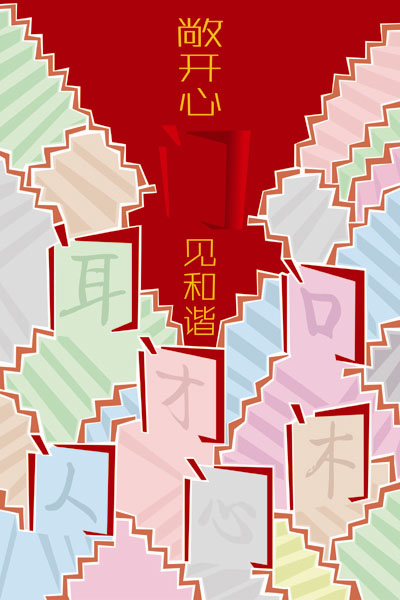 黑龍江省“雪花杯”優(yōu)秀公益廣告平面類銀獎(jiǎng)——《敞開心門見和諧》