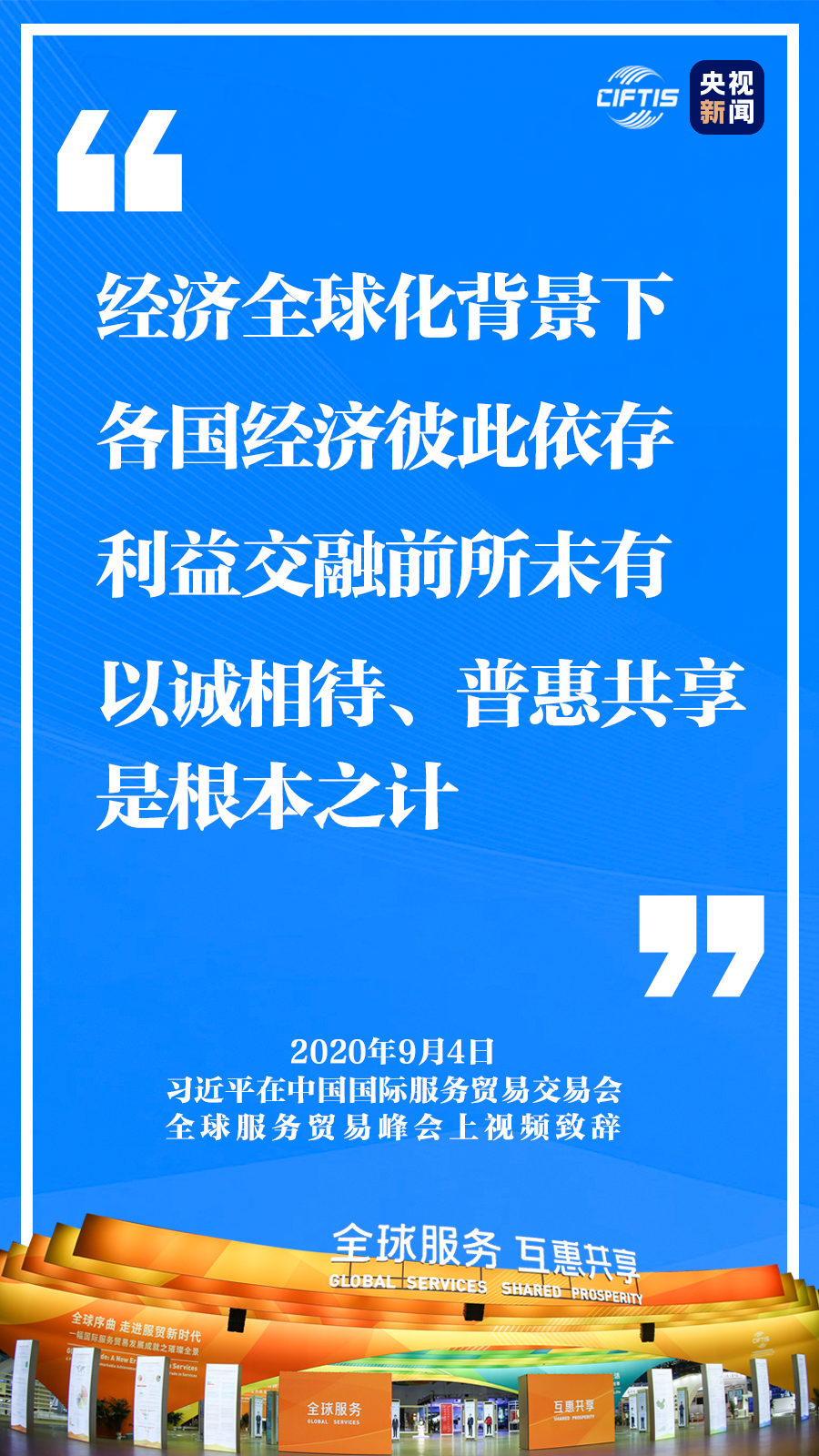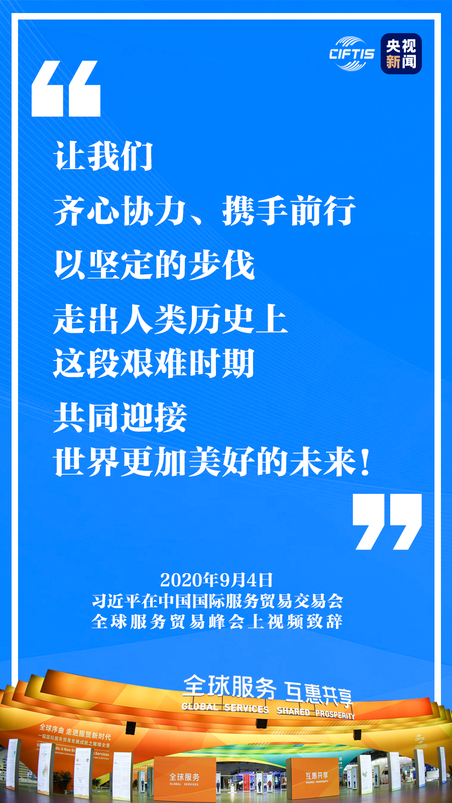 中國克服重重困難,舉辦這樣一場重大國際經(jīng)貿(mào)活動,就是要同大家攜手努力、共克時艱,共同促進全球服務貿(mào)易發(fā)展繁榮,推動世界經(jīng)濟盡快復蘇。