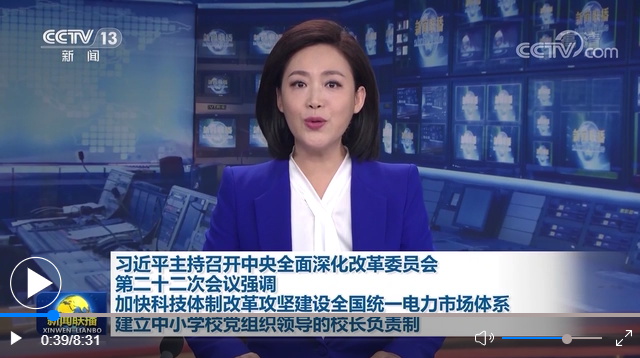 習近平在主持會議時強調,開展科技體制改革攻堅,目的是從體制機制上增強科技創(chuàng)新和應急應變能力,突出目標導向、問題導向,抓重點、補短板、強弱項,錨定目標、精準發(fā)力、早見成效,加快建立保障高水平科技自立自強的制度體系,提升科技創(chuàng)新體系化能力。要遵循電力市場運行規(guī)律和市場經濟規(guī)律,優(yōu)化電力市場總體設計,實現(xiàn)電力資源在全國更大范圍內共享互濟和優(yōu)化配置,加快形成統(tǒng)一開放、競爭有序、安全高效、治理完善的電力市場體系。加強黨對教育工作的全面領導是辦好教育的根本保證,要在中小學校建立黨組織領導的校長負責制,把政治標準和政治要求貫穿辦學治校、教書育人全過程各方面,堅持為黨育人、為國育才,保證黨的教育方針和黨中央決策部署在中小學校得到貫徹落實。要加強文物保護利用和文化遺產保護傳承,提高文物研究闡釋和展示傳播水平,讓文物真正活起來,成為加強社會主義精神文明建設的深厚滋養(yǎng),成為擴大中華文化國際影響力的重要名片。要支持中關村國家自主創(chuàng)新示范區(qū)更好發(fā)揮科技資源和制度創(chuàng)新優(yōu)勢,開展高水平科技自立自強先行先試改革。