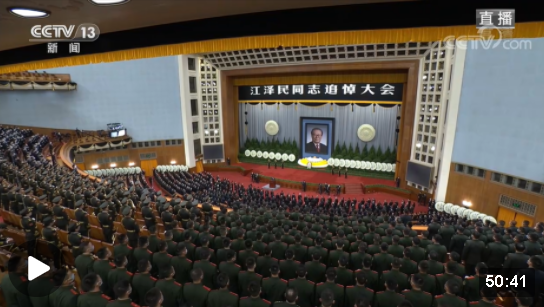 12月6日上午10時(shí),黨中央、全國(guó)人大常委會(huì)、國(guó)務(wù)院、全國(guó)政協(xié)、中央軍委在北京人民大會(huì)堂隆重舉行江澤民同志追悼大會(huì)。