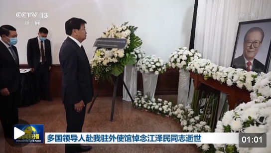 老撾人民革命黨中央總書記、國家主席通倫·西蘇里和老撾政府總理潘坎·維帕萬到中國駐老撾使館吊唁,表示江澤民同志為中國特色社會主義偉大事業(yè)作出卓著貢獻,為新世紀老中關系發(fā)展發(fā)揮重要引領作用。