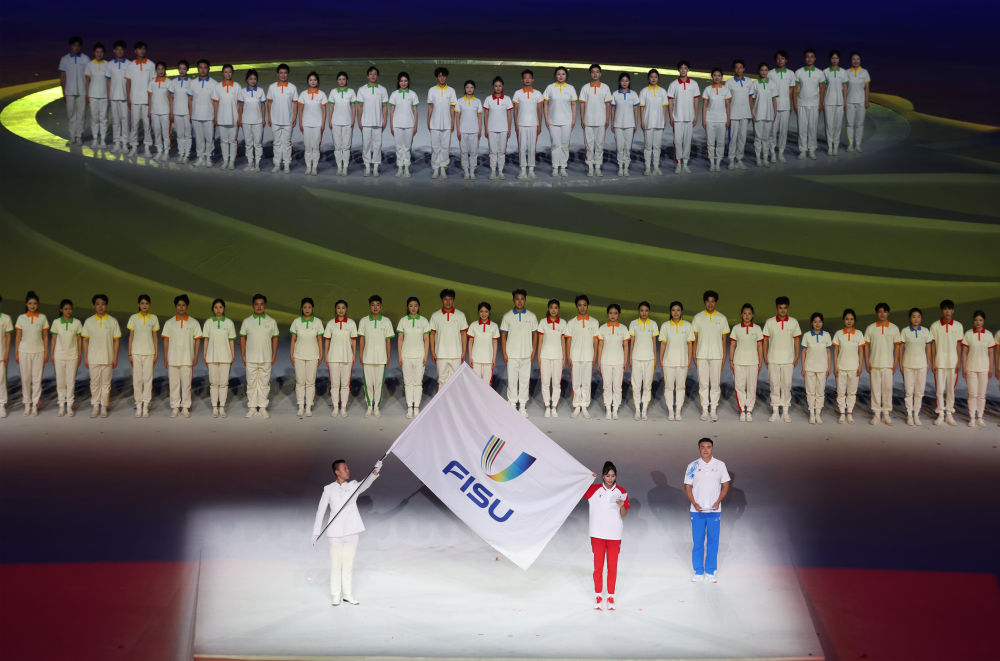 璀璨焰火,照亮碧波蕩漾的東安湖,在世界各地青年學生的熱切注目中,第三十一屆世界大學生夏季運動會開幕。