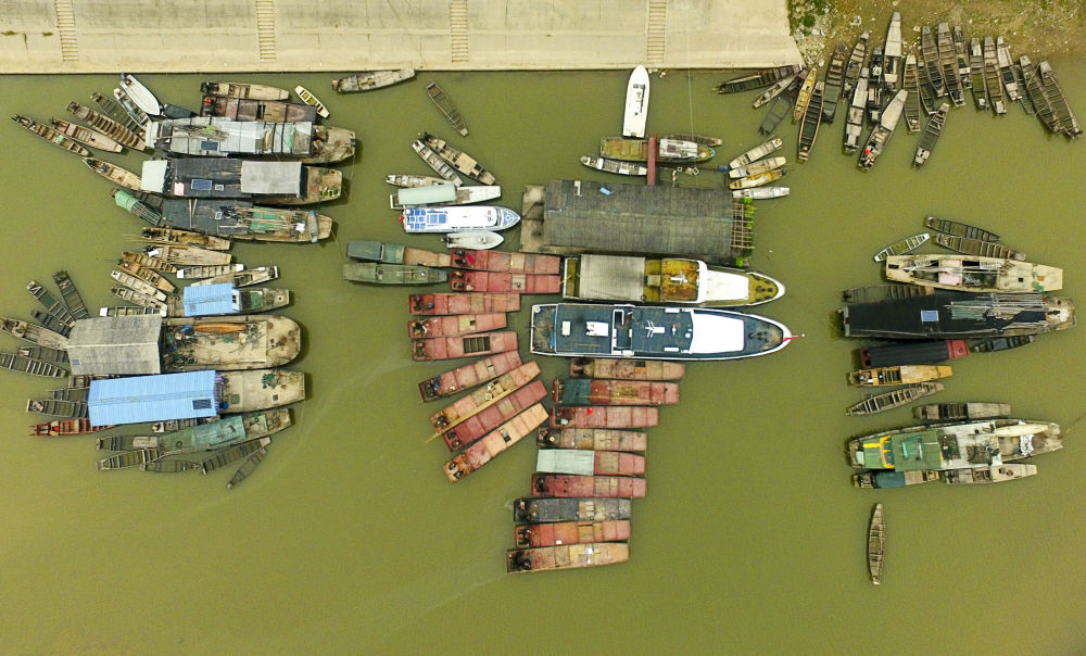這是2019年12月17日在湖南常德漢壽縣蔣家嘴鎮(zhèn)拍攝的??吭诙赐ズ叺臐O船(無(wú)人機(jī)照片)。2020年1月1日零時(shí)起,長(zhǎng)江流域332個(gè)自然保護(hù)區(qū)和水產(chǎn)種質(zhì)資源保護(hù)區(qū)全面禁止生產(chǎn)性捕撈。長(zhǎng)江流域各地重點(diǎn)水域也相繼進(jìn)入為期十年的常年禁捕期。