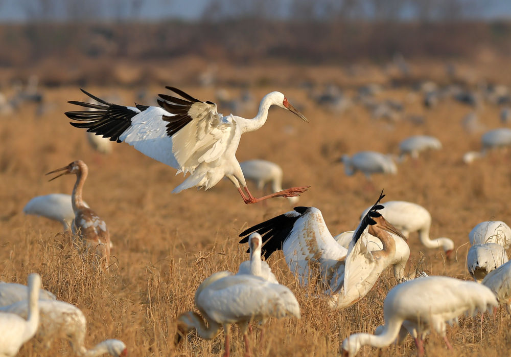 這是2021年1月15日在鄱陽(yáng)湖畔的江西余干縣康山墾殖場(chǎng)插旗洲拍攝的白鶴。隨著長(zhǎng)江重點(diǎn)水域生態(tài)修復(fù)措施的落實(shí),鄱陽(yáng)湖環(huán)境正發(fā)生嬗變。江西鄱陽(yáng)湖國(guó)家級(jí)自然保護(hù)區(qū)管理局2022年新年伊始發(fā)布的鄱陽(yáng)湖區(qū)最新鳥情數(shù)據(jù)顯示,工作人員在野外監(jiān)測(cè)統(tǒng)計(jì)到水鳥76.6萬(wàn)余只,創(chuàng)有監(jiān)測(cè)記錄以來(lái)新高。