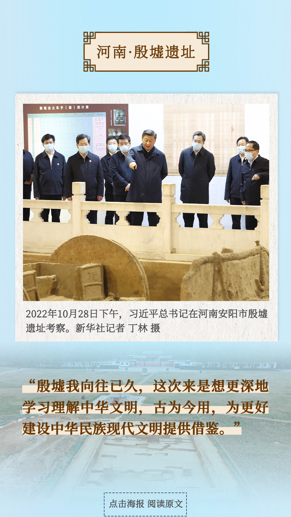 從四川三蘇祠到河南殷墟遺址,從山東孔府、孔子研究院到湖南大學(xué)岳麓書院,從甘肅嘉峪關(guān)關(guān)城到福建朱熹園,從山西云岡石窟到廣東潮州古城……考察文化遺產(chǎn)、探尋文明根脈,帶著深厚的歷史感,習(xí)近平總書記的“文化足跡”遍及全國(guó)。