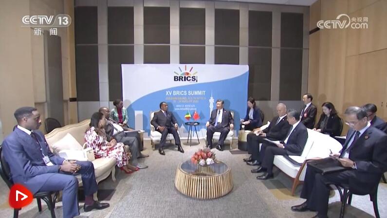 當(dāng)?shù)貢r間8月24日上午,國家主席習(xí)近平在約翰內(nèi)斯堡出席金磚國家領(lǐng)導(dǎo)人會晤期間會見剛果(布)總統(tǒng)薩蘇。
