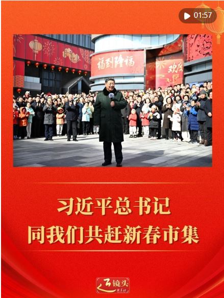 習(xí)近平總書記同人民群眾共趕市集、共迎新春,是年節(jié)里最溫暖的圖景。總書記走到百姓中間,送上真摯的新春祝福:“在農(nóng)歷馬年龍馬精神、身體健康、事業(yè)有成、闔家幸福!”