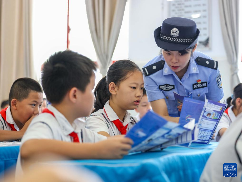 9月11日,貴州省安順市公安局西秀分局民警在安順市第七小學(xué)為學(xué)生講解不良上網(wǎng)習(xí)慣的危害。(新華社發(fā) 陳熙 攝)