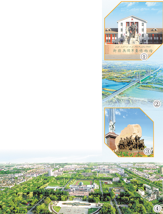 圖①:新疆兵團(tuán)軍墾博物館外景。資料圖片 圖②:第四師可克達(dá)拉大橋。馬應(yīng)林?jǐn)z 圖③:石河子屯墾戍邊紀(jì)念碑。資料圖片 圖④:第八師石河子市鳥(niǎo)瞰圖。王建軍攝 要弘揚(yáng)民族精神和時(shí)代精神,踐行胡楊精神和兵團(tuán)精神,激勵(lì)各級(jí)干部在新時(shí)代扎根邊疆、奉獻(xiàn)邊疆。 ——摘自習(xí)近平總書記在第三次中央新疆工作座談會(huì)上的講話 皚皚天山,巍巍昆侖;茫茫戈壁,漫漫大漠。在祖國(guó)的西陲,有這樣一支特殊的隊(duì)伍:他們不拿軍餉,不穿軍裝,永不換防。這支隊(duì)伍,就是新疆生產(chǎn)建設(shè)兵團(tuán)。 2014年10月7日,中共中央、國(guó)務(wù)院、中央軍委在致新疆生產(chǎn)建設(shè)兵團(tuán)成立60周年的賀信中指出:“幾代兵團(tuán)人發(fā)揚(yáng)‘熱愛(ài)祖國(guó)、無(wú)私奉獻(xiàn)、艱苦創(chuàng)業(yè)、開(kāi)拓進(jìn)取’的兵團(tuán)精神,扎根新疆沙漠周邊和邊境沿線,認(rèn)真履行黨和國(guó)家賦予的職責(zé),切實(shí)當(dāng)好生產(chǎn)隊(duì)、工作隊(duì)、宣傳隊(duì)、戰(zhàn)斗隊(duì),充分發(fā)揮建設(shè)大軍、中流砥柱、銅墻鐵壁作用,在開(kāi)發(fā)建設(shè)新疆、增進(jìn)民族團(tuán)結(jié)、推進(jìn)社會(huì)進(jìn)步、鞏固西北邊防等方面作出了重要貢獻(xiàn)?!?/p> 2020年9月,習(xí)近平總書記在第三次中央新疆工作座談會(huì)上強(qiáng)調(diào):“要弘揚(yáng)民族精神和時(shí)代精神,踐行胡楊精神和兵團(tuán)精神,激勵(lì)各級(jí)干部在新時(shí)代扎根邊疆、奉獻(xiàn)邊疆?!?/p> 把戈壁變成良田,把荒漠變成綠洲,用熱血鑄就對(duì)祖國(guó)的忠誠(chéng) 1954年,新疆軍區(qū)生產(chǎn)建設(shè)兵團(tuán)成立,拉開(kāi)了新中國(guó)屯墾戍邊歷史偉業(yè)的序幕。他們?cè)吔?、無(wú)私奉獻(xiàn),艱苦創(chuàng)業(yè)、開(kāi)拓進(jìn)取,把戈壁變成良田,把荒漠變成綠洲,用熱血鑄就對(duì)祖國(guó)的忠誠(chéng),譜寫了一曲曲建設(shè)祖國(guó)、保衛(wèi)邊疆的壯歌。 67載春華秋實(shí),67載艱苦奮斗。在中國(guó)共產(chǎn)黨歷史展覽館里,“兵團(tuán)精神”板塊把人們的思緒帶回到那段激情燃燒的歲月。展板上,兵團(tuán)戰(zhàn)士揮舞鎬頭,在戈壁荒原上開(kāi)墾耕種,展現(xiàn)出戰(zhàn)天斗地的豪情?!爱?dāng)年沒(méi)有現(xiàn)在那么多先進(jìn)的生產(chǎn)工具,挖渠開(kāi)荒都是肩挑背扛?!毙陆a(chǎn)建設(shè)兵團(tuán)第一師老軍墾人楊飛鵬回憶,兵團(tuán)成立初期,沒(méi)有油和柴,就用鹽水摻著苞谷面湊合吃,冬季還要從外地運(yùn)大白菜和蘿卜?!吧习嘁粨?dān)肥,下班一擔(dān)草,中午打沙棗,晚上圍著火爐剝棉桃”是他們每天真實(shí)的生活寫照。 “不與民爭(zhēng)利、不與民爭(zhēng)水、不與民爭(zhēng)地”,兵團(tuán)從成立之日起就把駐地選擇在風(fēng)頭水尾、沙漠邊沿和邊境沿線。兵團(tuán)第十師一八三團(tuán)駐地,氣候極其惡劣,冬季長(zhǎng)達(dá)5個(gè)半月之久,冰天雪地,寒風(fēng)刺骨。老軍墾人李蓮芝回憶,有一次,連里派4名同志上戈壁灘打柴,凌晨1點(diǎn)多才回來(lái),一名沒(méi)有穿氈筒的同志的腳和棉膠鞋凍在一起脫不下來(lái),10個(gè)腳趾頭全被凍壞,只能用刀子把鞋子割破。 但就在這樣艱苦的條件下,兵團(tuán)人以火一樣的熱情屯墾戍邊、接續(xù)奮斗,讓沙漠披上綠衣,把荒野變成良田。 “正是憑借堅(jiān)定的理想信念,一代代兵團(tuán)人屯墾戍邊,成為鞏固邊防、開(kāi)發(fā)新疆的生力軍?!毙陆a(chǎn)建設(shè)兵團(tuán)黨委黨校副校長(zhǎng)王小平說(shuō),“兵團(tuán)精神是我們共產(chǎn)黨人精神譜系的重要組成部分,是激勵(lì)新疆各族兒女共同奮斗的寶貴精神資源,必須繼承好和發(fā)揚(yáng)好?!?/p> 兵團(tuán)戰(zhàn)士們辛勤耕耘、忠誠(chéng)守衛(wèi),做“永不挪動(dòng)的界碑” “割不斷的國(guó)土情,難不倒的兵團(tuán)人,攻不破的邊防線,摧不垮的軍墾魂”,號(hào)稱“西北邊境第一團(tuán)”的兵團(tuán)第十師一八五團(tuán)一連房前石碑上刻著的這段話,就是對(duì)兵團(tuán)人守土衛(wèi)國(guó)的最好寫照,對(duì)祖國(guó)的無(wú)限忠誠(chéng)和深沉熱愛(ài)早已化為無(wú)聲的行動(dòng)。 阿拉克別克河雖然只有60公里長(zhǎng),卻是中哈兩國(guó)的界河。1988年,阿拉克別克河突發(fā)洪水,大壩決口,3000多畝耕地、林帶被毀。危急時(shí)刻,一八五團(tuán)全團(tuán)迅速成立了上百人的“敢死隊(duì)”,歷經(jīng)16個(gè)晝夜的艱苦奮戰(zhàn),終將缺口堵住。 時(shí)年19歲的二代軍墾人馬軍武也參加了這場(chǎng)驚心動(dòng)魄的戰(zhàn)斗。為了預(yù)防水災(zāi)隱患,兵團(tuán)在缺口處設(shè)立了一個(gè)水文點(diǎn),馬軍武主動(dòng)申請(qǐng)?jiān)诖笋v守。這一守就是30多年。30多年來(lái),馬軍武和妻子張正美聽(tīng)壞了幾臺(tái)收音機(jī),燒壞了幾盞柴油燈。“一生只做一件事,我為祖國(guó)當(dāng)衛(wèi)士?!瘪R軍武的話慷慨激昂。 類似的事跡在兵團(tuán)比比皆是:為國(guó)巡邊50多年、總里程達(dá)20多萬(wàn)公里的魏德友,祖孫四代接力守護(hù)邊境線的王傳德,在荒無(wú)人煙的地方守衛(wèi)水庫(kù)30多年的李炳清,守護(hù)灌溉萬(wàn)畝良田的水渠達(dá)26年的蔣興暉……