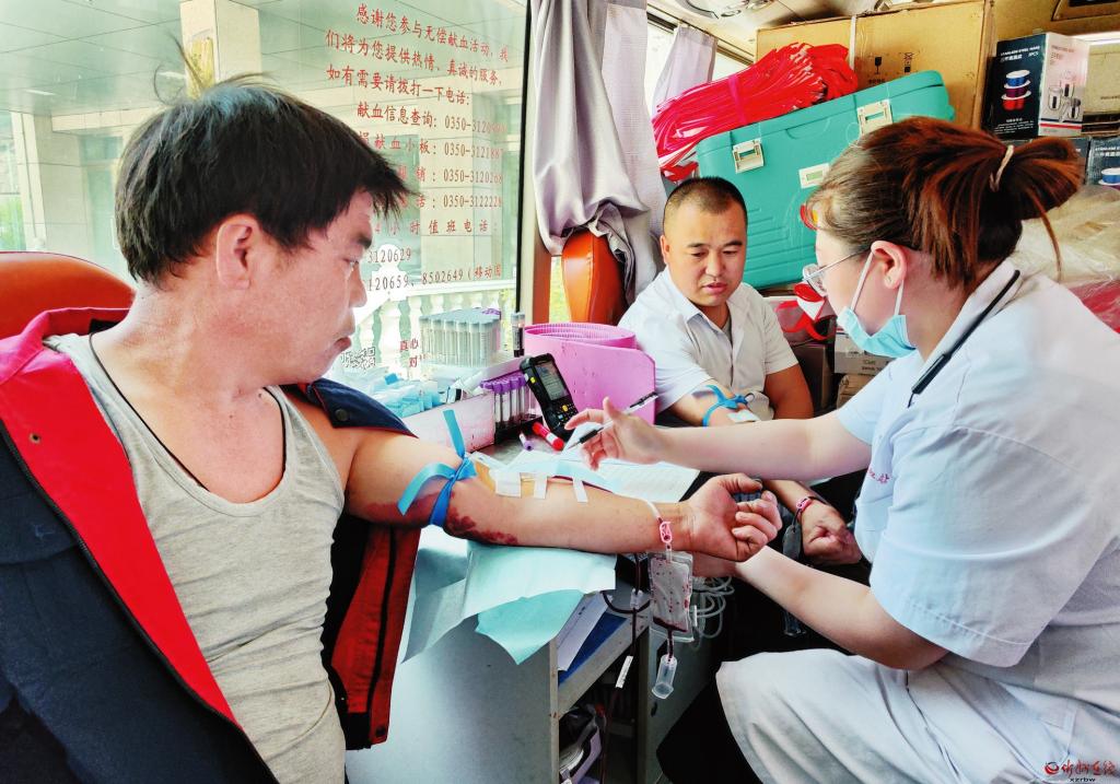 近日,忻州市中心血站流動采血車來到山西寧武大運(yùn)華盛能源集團(tuán)有限公司院內(nèi)組織采血。該公司10名干部職工主動參與、積極報名,在醫(yī)護(hù)人員的引導(dǎo)下,有序進(jìn)行登記、填表、量血壓、測血型、抽血等。