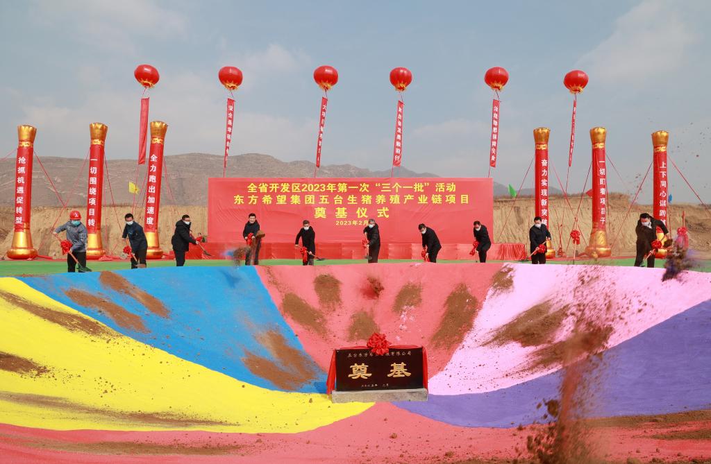 共同為“開工一批”重點項目東方希望集團東雷養(yǎng)殖項目培土奠基。張存良 攝