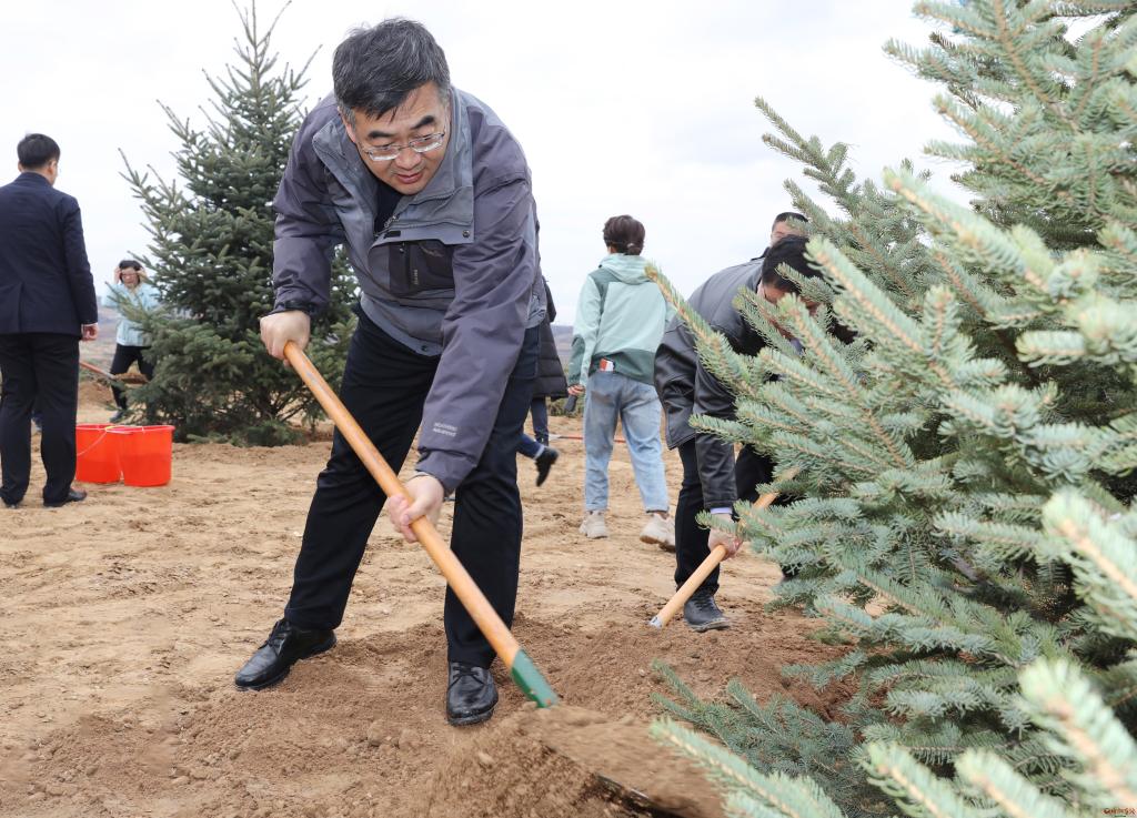 朱曉東指出,國(guó)土綠化,功在當(dāng)代、利在千秋。開展大規(guī)模國(guó)土綠化行動(dòng),是貫徹落實(shí)習(xí)近平生態(tài)文明思想的重要實(shí)踐,是忻州牢記領(lǐng)袖囑托、保護(hù)黃河安瀾、筑牢環(huán)京津冀生態(tài)屏障的重要抓手。全市上下要把抓好生態(tài)文明建設(shè)作為堅(jiān)決捍衛(wèi)“兩個(gè)確立”的具體行動(dòng),增強(qiáng)“四個(gè)意識(shí)”、堅(jiān)定“四個(gè)自信”、做到“兩個(gè)維護(hù)”,站在筑牢國(guó)家生態(tài)安全屏障的戰(zhàn)略高度,站在實(shí)現(xiàn)忻州高質(zhì)量永續(xù)發(fā)展的高度,深刻認(rèn)識(shí)開展國(guó)土綠化行動(dòng)和全民義務(wù)植樹的極端重要性,堅(jiān)決落實(shí)好市委、市政府的部署安排。朱曉東說,忻州作為黃河入晉第一市,作為汾河、桑干河、滹沱河“三河之源”,作為華北平原西部生態(tài)屏障,扛牢生態(tài)建設(shè)使命,必須謀在先干得實(shí)。要牢固樹立生態(tài)文明觀,準(zhǔn)確把握生態(tài)與經(jīng)濟(jì)、生態(tài)與社會(huì)、全局與局部、當(dāng)前與長(zhǎng)遠(yuǎn)的關(guān)系,嚴(yán)格落實(shí)忻州“兩屏三區(qū)三帶”建設(shè)規(guī)劃,統(tǒng)籌山水林田湖草沙綜合治理,精準(zhǔn)謀劃、精細(xì)布局,堅(jiān)持造管并重、造改并行、造封結(jié)合,確保在遵循規(guī)律的基礎(chǔ)上因地制宜,不斷擴(kuò)大林地面積,不斷提高森林質(zhì)量,持續(xù)提升生態(tài)系統(tǒng)穩(wěn)定性,努力探索出務(wù)實(shí)管用的忻州綠化路徑。要圍繞國(guó)家重點(diǎn)區(qū)域重大生態(tài)修復(fù)和保護(hù)工程“雙重”項(xiàng)目、省級(jí)黃河流域生態(tài)防護(hù)林屏障、環(huán)京津冀生態(tài)安全屏障等造林綠化重點(diǎn)工程,積極爭(zhēng)取更多項(xiàng)目落地忻州。偏關(guān)、河曲、保德、五寨4縣要統(tǒng)籌造林綠化和荒漠化治理,科學(xué)精準(zhǔn)推進(jìn)人造林、退化林修復(fù)、100個(gè)重點(diǎn)村莊高標(biāo)準(zhǔn)綠化美化等項(xiàng)目實(shí)施,著力打造集晉西北整流域綜合治理、片帶狀生態(tài)防護(hù)、節(jié)點(diǎn)景觀綠化為一體的荒漠化典型示范工程,為黃河流域生態(tài)保護(hù)修復(fù)提供可復(fù)制可借鑒的經(jīng)驗(yàn)。要深化全民履“植”,繼續(xù)深化全民植樹成效,創(chuàng)新義務(wù)植樹形式,提高公民義務(wù)植樹參與率,讓愛綠植綠護(hù)綠成為群眾的自覺追求,讓綠水青山成為忻州的“幸??可健?。要完善管護(hù)體系,把營(yíng)造林?jǐn)?shù)量、質(zhì)量“雙增”的目標(biāo)擺在首位,創(chuàng)新管護(hù)方式,全面落實(shí)林長(zhǎng)制,做好森林防火工作,加大對(duì)亂砍濫伐、非法開墾等破壞造林綠化成果違法行為的處置力度,真正管在實(shí)處、管在關(guān)鍵。朱曉東強(qiáng)調(diào),做好國(guó)土綠化工作關(guān)鍵在落實(shí)。市發(fā)改、財(cái)政、自然資源(林業(yè))、住建、交通運(yùn)輸、農(nóng)業(yè)、水利等主要職能部門,要各司其職、密切配合,協(xié)同推進(jìn)城市、礦山、道路、村鎮(zhèn)、水域、山地等國(guó)土綠化工作。各縣(市、區(qū))一把手要親自抓、重點(diǎn)抓、具體抓,樹立正確的政績(jī)觀,主政一方、造福一方,為當(dāng)?shù)刈訉O后代建好水庫、錢庫、糧庫、碳庫。要開展身邊增綠、城鄉(xiāng)增景行動(dòng),既增大“綠”,也抓小“綠”、微“綠”,既造底色,也造景色、美色,真正把國(guó)土綠化同高質(zhì)量發(fā)展大局結(jié)合起來,為美麗忻州、品質(zhì)忻州、幸福忻州貢獻(xiàn)更多力量。