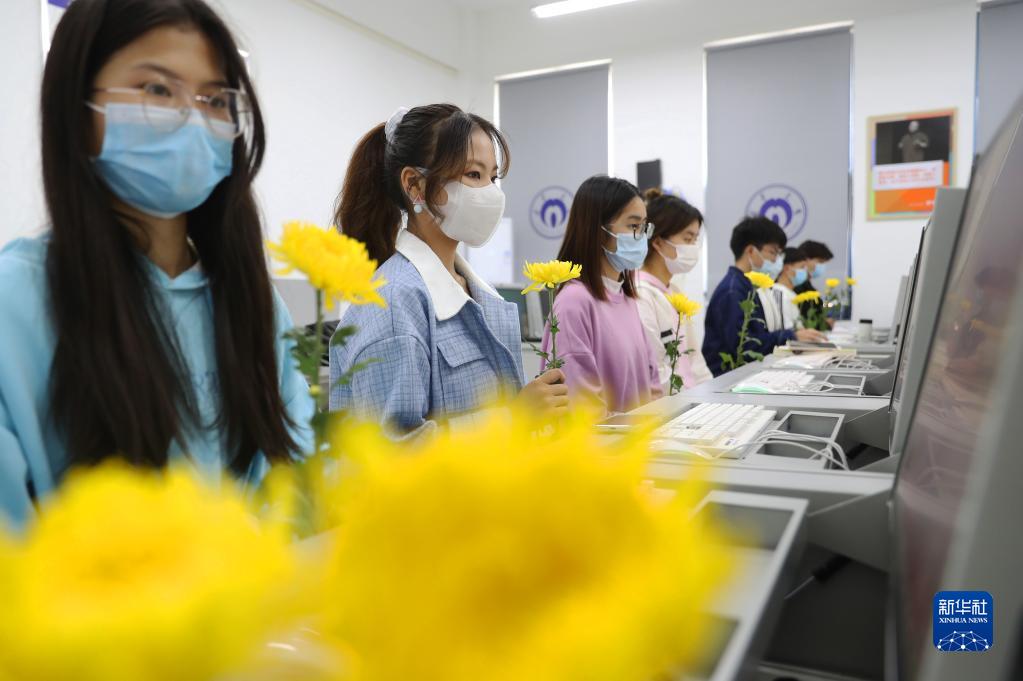 4月4日,在湖南省衡陽市南華大學(xué)經(jīng)濟(jì)管理與法學(xué)學(xué)院,同學(xué)們參加網(wǎng)上祭英烈活動。
