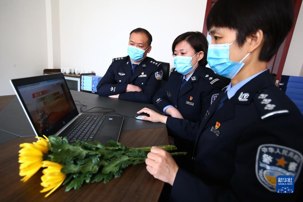 4月4日,山東省濟(jì)南市公安局市中區(qū)分局桿石橋派出所組織民警開展網(wǎng)上祭奠英烈活動。
