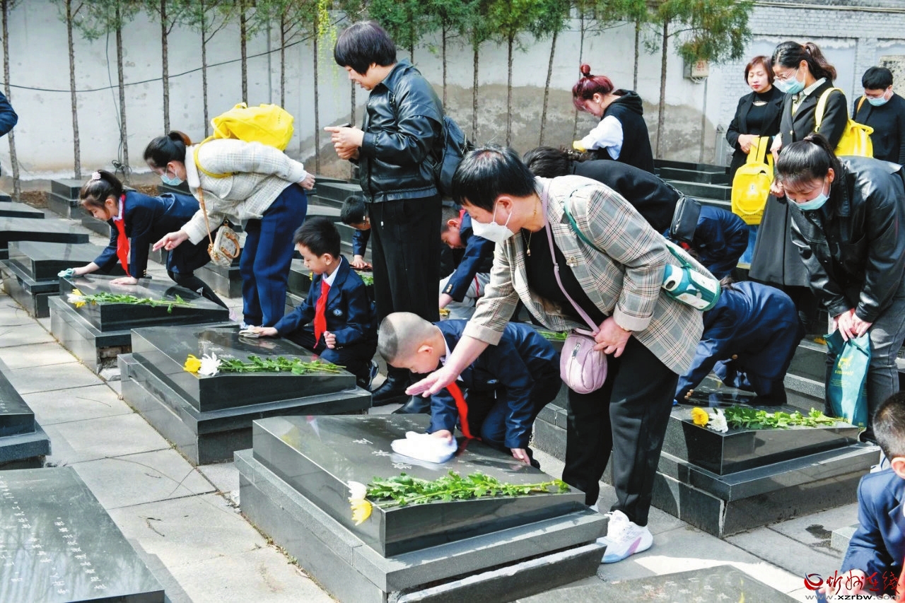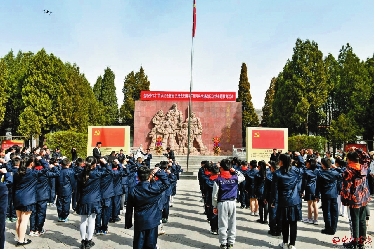 在西河頭地道戰(zhàn)紀(jì)念館英雄紀(jì)念碑前,大家聆聽革命先烈故事,向烈士紀(jì)念碑敬獻(xiàn)花圈,寄托對革命先烈的無限哀思和敬仰之情。 本報通訊員攝
