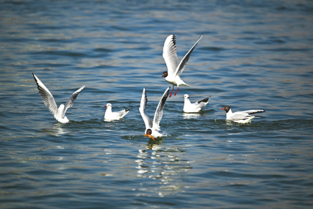 近年來(lái),太原汾河景區(qū)生態(tài)持續(xù)向好,野生鳥(niǎo)類(lèi)紛紛在這里棲息繁衍。圖為今年春季飛臨的大批紅嘴鷗。