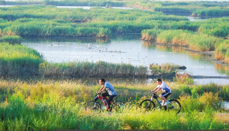 初夏,漫步鹽湖七彩步道,或見市民慢跑騎行、健身鍛煉,或見游客觀水賞景。芳草萋萋、水鳥頻現(xiàn)的鹽湖正成為市民擁抱自然的詩意棲息地。