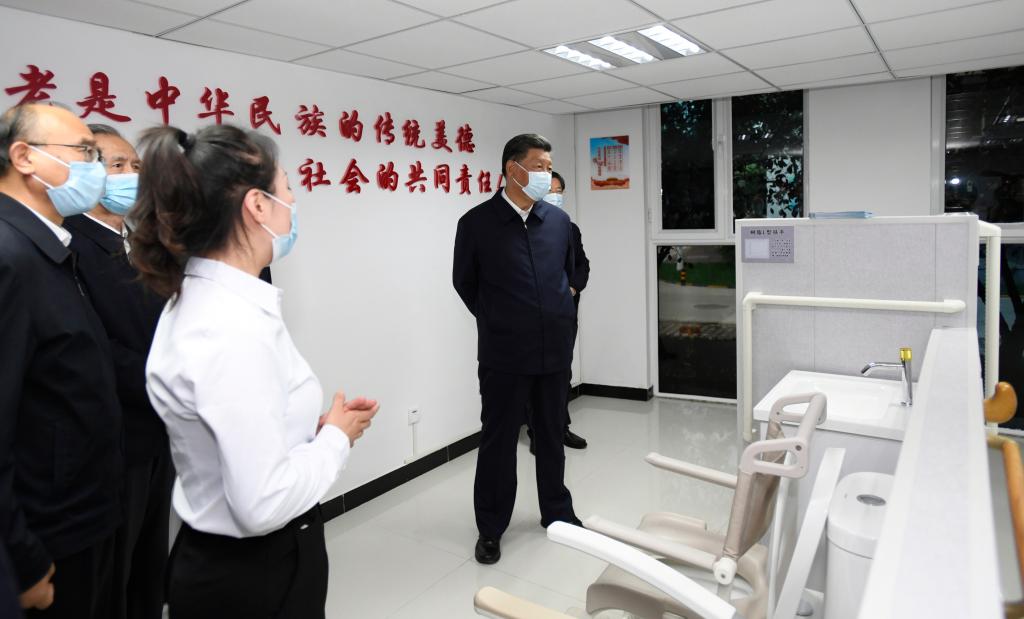 2021年8月24日,習(xí)近平總書記在河北省承德市濱河社區(qū)居家養(yǎng)老服務(wù)中心察看適老化改造等項(xiàng)目。新華社記者 李學(xué)仁 攝