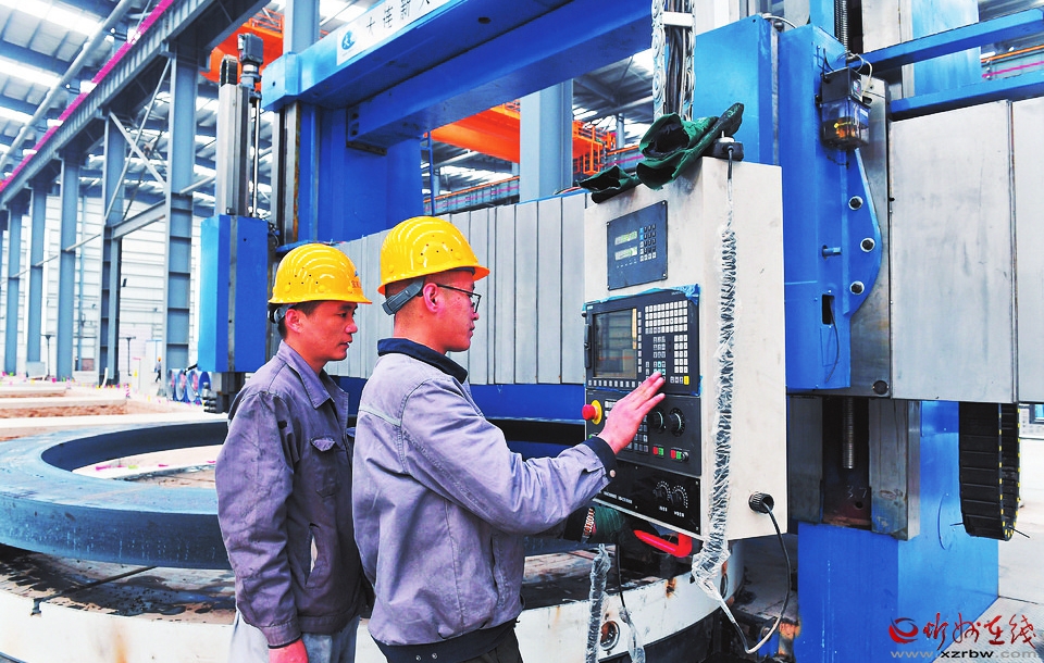在山西寶航重工有限公司生產車間內,工人正在操作加工設備。 暢 雪 郗宏光攝
