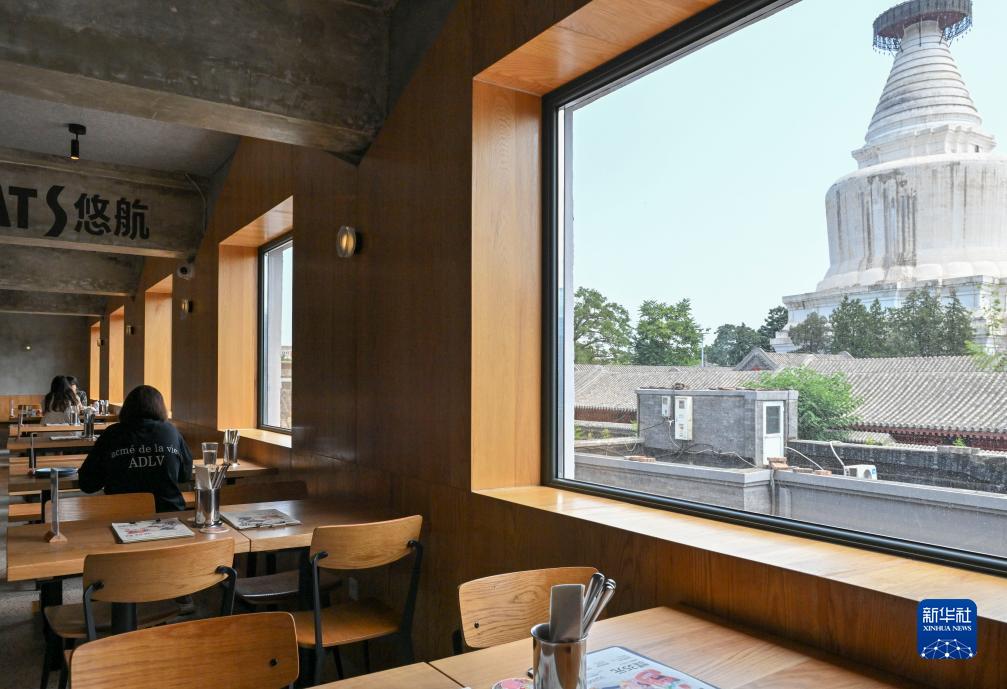 初伏天,北京的天空鋪著乳白色云朵。西城區(qū)宮門口西岔胡同,靜謐寬敞,青磚灰瓦與紅墻綠樹間,坐落著一間間頗具文藝范兒的咖啡店、精釀啤酒館,抬頭望去,妙應(yīng)寺白塔莊重滄桑,古樸與現(xiàn)代相映成趣。