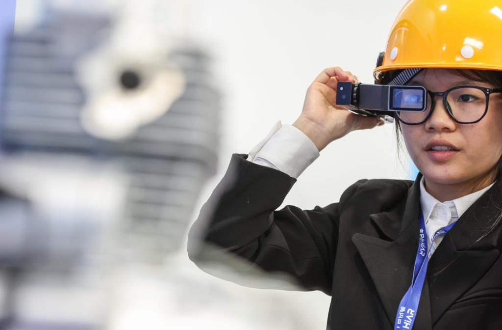 6月1日,昆山元宇宙產(chǎn)業(yè)園內(nèi)的亮風臺(昆山)信息科技有限公司里,工作人員在演示AR智能穿戴設備賦能工業(yè)應用的場景。新華社記者 楊磊 攝