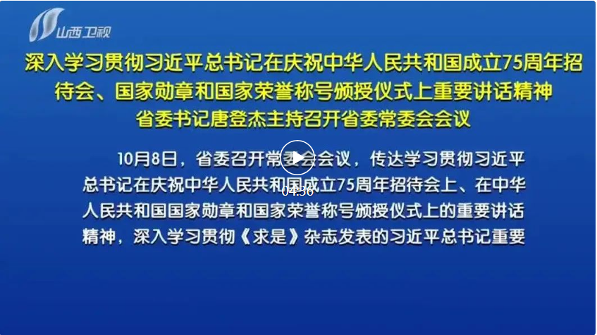 會議指出,習近平總書記在慶祝中華人民共和國成立75周年招待會上的重要講話,總結回顧75年來中國共產(chǎn)黨團結帶領全國各族人民不懈奮斗取得的偉大成就,對推進中國式現(xiàn)代化作出重大部署、提出明確要求,為把這一前無古人的偉大事業(yè)不斷推向前進提供了根本遵循。走好新的征程,要始終堅持黨的領導,深刻領悟“兩個確立”的決定性意義,增強“四個意識”、堅定“四個自信”、做到“兩個維護”,持之以恒推進全面從嚴治黨,確保黨中央各項決策部署在山西不折不扣落到實處。要始終堅持中國特色社會主義道路,堅定歷史自信,增強歷史主動,高舉改革開放旗幟,堅定扛牢使命任務,在推動高質(zhì)量發(fā)展、深化全方位轉(zhuǎn)型上不斷取得新成效。要始終堅持以人民為中心,牢記黨的根本宗旨和國家性質(zhì),樹立和踐行正確政績觀,用心用情用力辦好民生實事,努力讓全省人民在共同奮斗中共享改革發(fā)展成果。要始終胸懷兩個大局、心懷“國之大者”,自覺把山西工作放到黨和國家工作大局中來定位、謀劃和推進,為以中國式現(xiàn)代化全面推進強國建設、民族復興偉業(yè)作出山西貢獻。