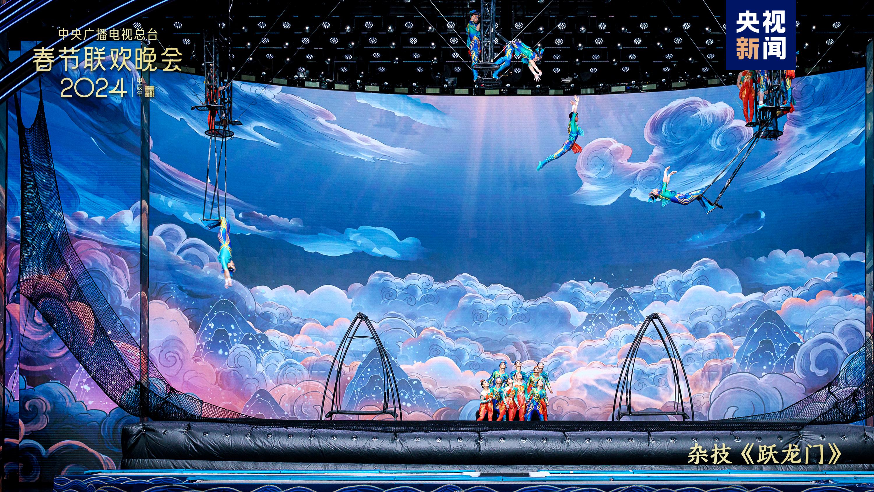 戲曲節(jié)目《百花爭艷》中,老少中青群英會(huì),演繹百萬金戈鐵馬、千年戀愛傳奇,國家級非物質(zhì)文化遺產(chǎn)潮劇首次在總臺(tái)春晚舞臺(tái)綻放華彩。雜技《躍龍門》結(jié)合競技體育項(xiàng)目“蹦床”和雜技“浪橋飛人”,表現(xiàn)出奮勇向前、更上層樓的干勁闖勁。陜西西安分會(huì)場全民齊誦詩詞歌賦,恢宏大氣的《山河詩長安》令人詩情澎湃、暢懷無限;多民族載歌載舞、共賀新春,新疆喀什分會(huì)場的《舞樂新疆》節(jié)奏歡快氣氛熱烈,展現(xiàn)石榴籽一樣緊緊抱在一起的各民族一家親。