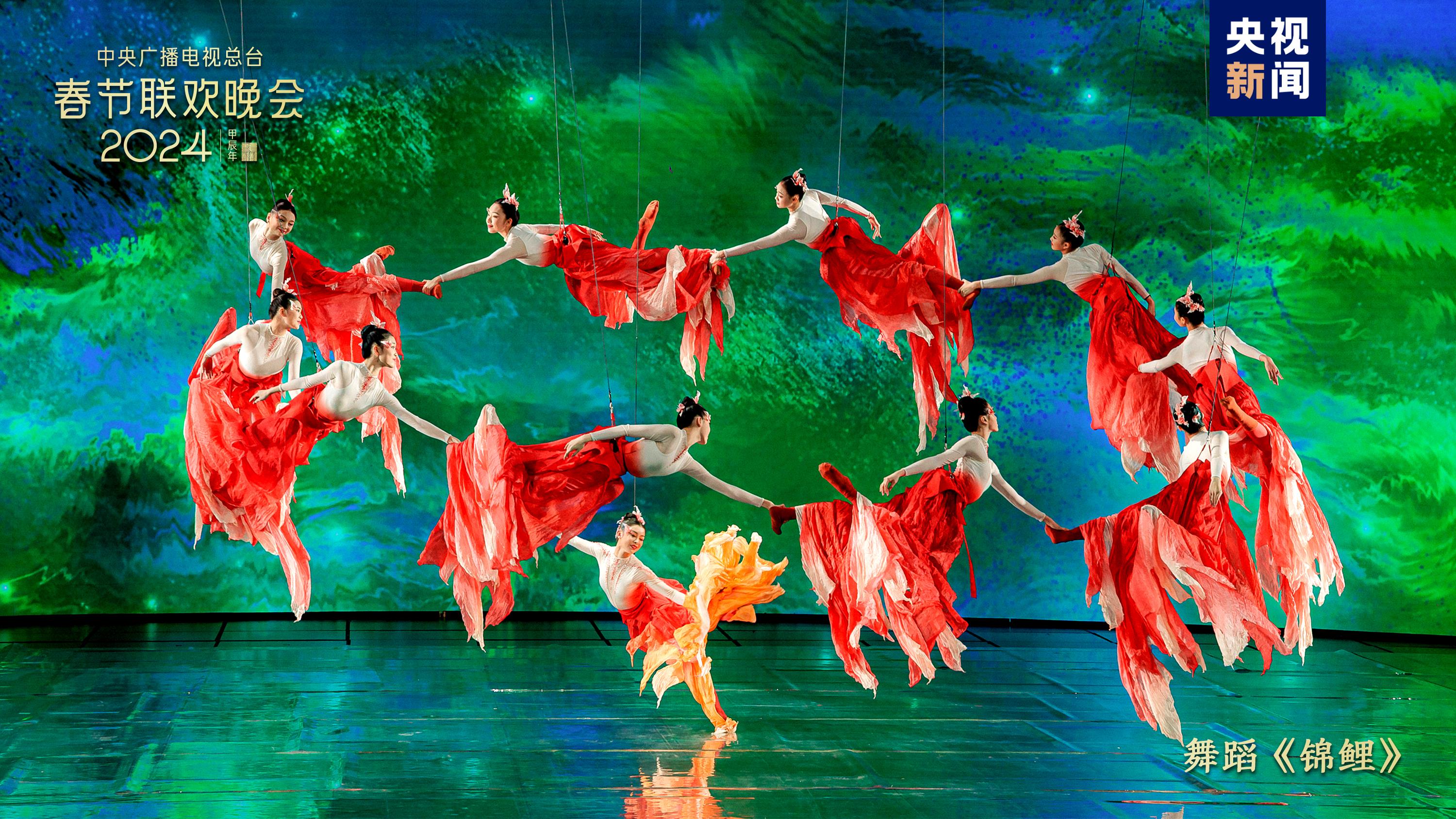 五彩紋樣燦若云霞,繪出錦繡中華。中國傳統(tǒng)紋樣創(chuàng)演秀《年錦》選取漢、唐、宋、明四個(gè)朝代富有代表性的紋樣,通過歌曲+虛擬合成技術(shù),織出一幅跨越千載的紋樣變遷圖卷。劉濤、劉詩詩、李沁、關(guān)曉彤身著傳統(tǒng)服飾,圖案繁盛、細(xì)節(jié)有序的華服之美隱藏著河清海晏、繁榮昌盛的美好祝福。舞蹈《錦鯉》融合AI、XR等技術(shù),舞者以飛天之姿化身水中錦鯉,點(diǎn)波流金,煥活舞臺(tái)上的一池春水,令人驚艷。