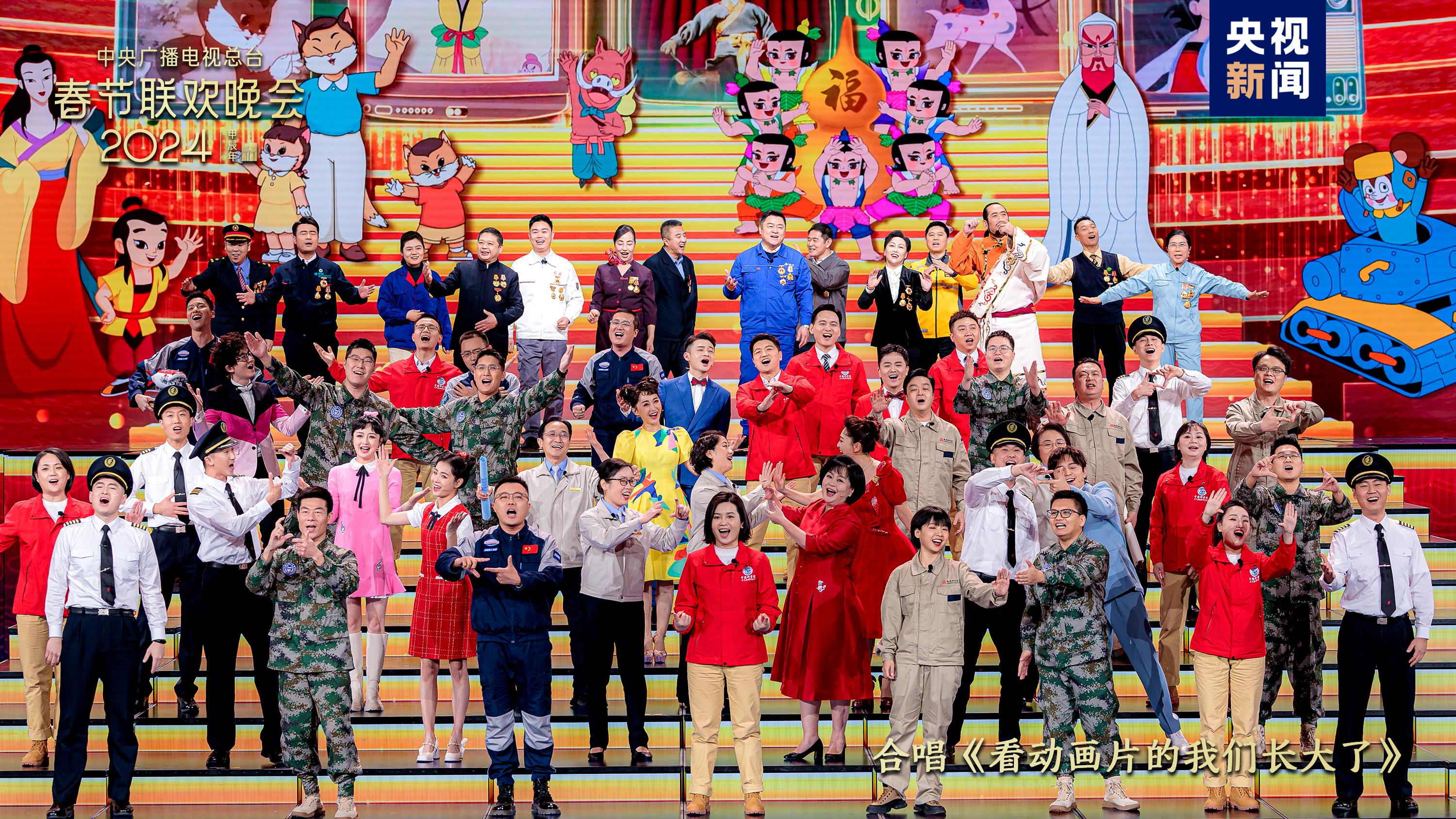 踐行“以人民為中心”的創(chuàng)作導(dǎo)向,今年總臺(tái)春晚邀請?jiān)诟餍袠I(yè)發(fā)光發(fā)熱、可愛可親的平凡人亮相舞臺(tái)、入座觀眾席。真摯動(dòng)人的百姓故事,奮斗進(jìn)取的精神血脈,盡展神州大地的蓬勃生機(jī)。開場短片《我們的春晚》以電影化拍攝手法,記錄勇敢追夢的百姓群像;全國五一勞動(dòng)獎(jiǎng)?wù)芦@得者,神舟十七號航天員乘組以及飛行員、教師、科研人員、設(shè)計(jì)師等50余位行業(yè)代表一同合唱《看動(dòng)畫片的我們長大了》,在熟悉的童年旋律中串起成長的閃光軌跡。大國工匠、勞模代表等在遼寧沈陽分會(huì)場唱響“咱們都回家鄉(xiāng),鉚足干勁兒闖一闖”,自信的笑容照亮人們對新一年的向往。