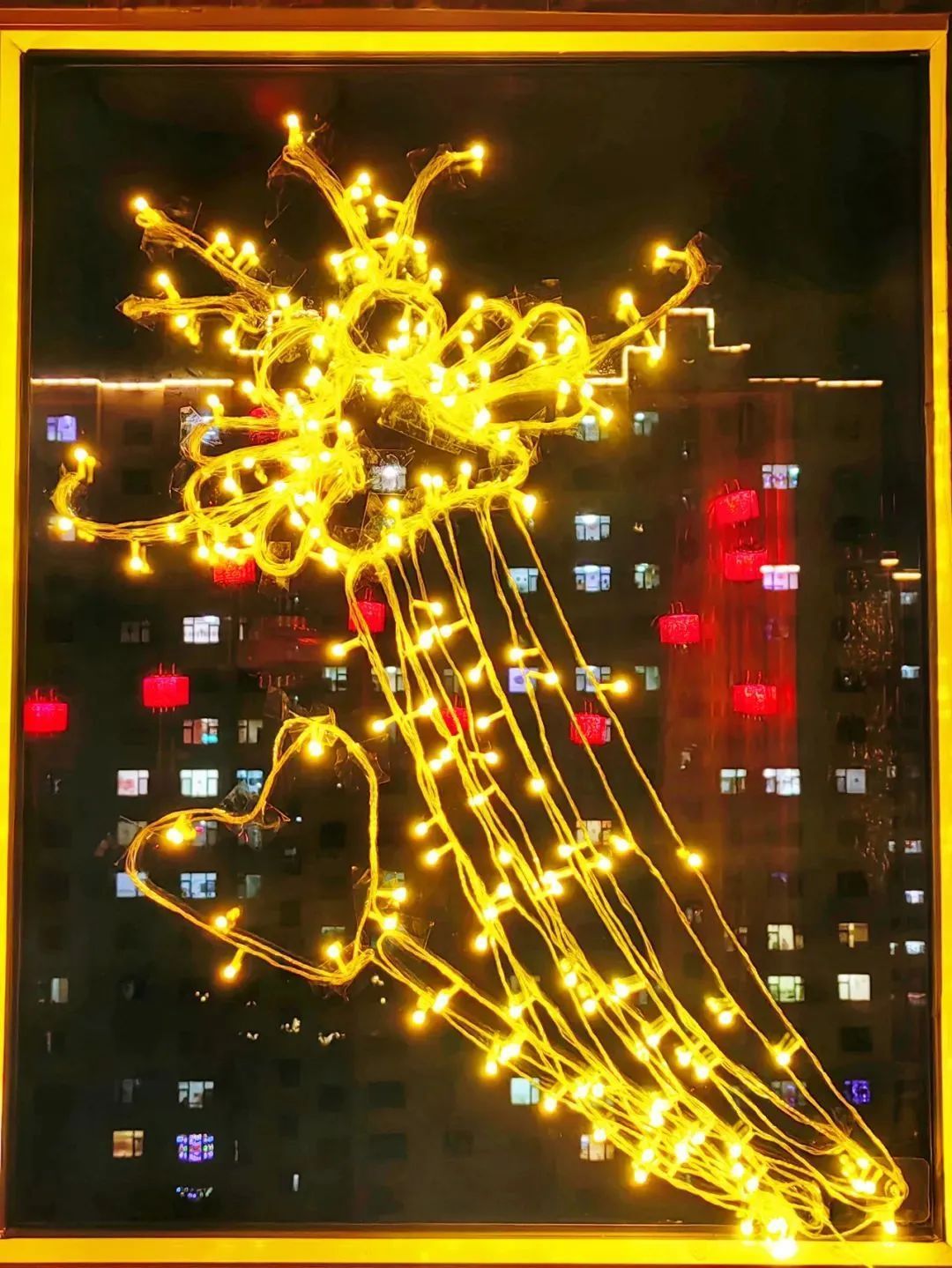 在陽(yáng)城,市民從陽(yáng)阿廣場(chǎng)彩燈旁經(jīng)過,春節(jié)期間處處張燈結(jié)彩,節(jié)日氛圍濃厚