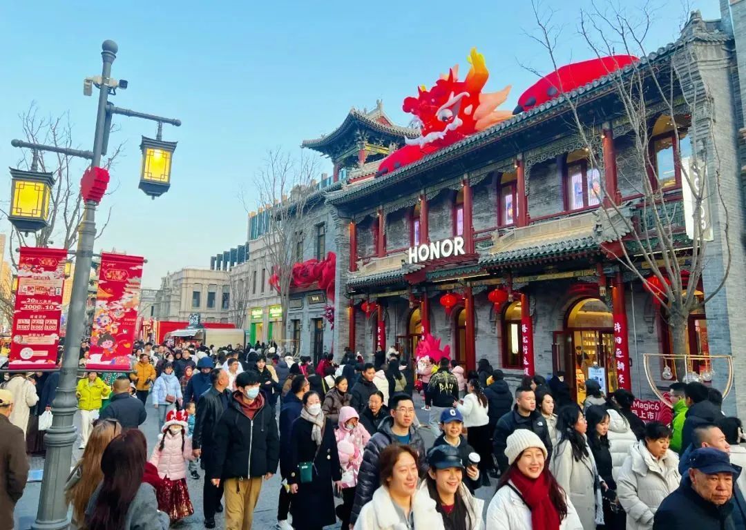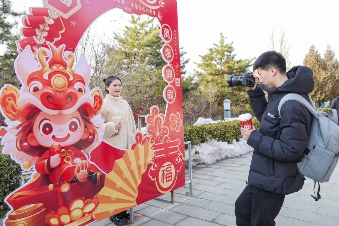 人們?cè)陉?yáng)泉記憶·1947文化園舉辦的2024新春游園會(huì)上打卡拍照