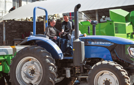 3月23日,臨汾市古縣舊縣鎮(zhèn)金紅農(nóng)機(jī)市場(chǎng)內(nèi),農(nóng)機(jī)手在銷(xiāo)售人員的指導(dǎo)下挑選拖拉機(jī)。閆銳鵬攝