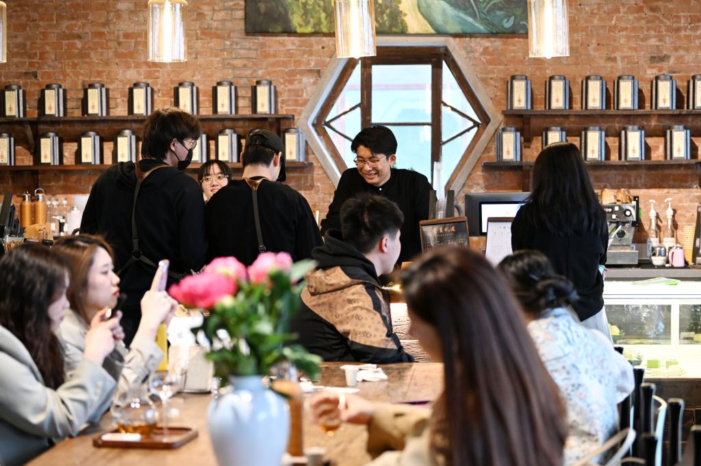 在天津市和平區(qū)五大道樘院內,一家新開業(yè)的茶飲店內顧客絡繹不絕。新華社記者 李然 攝