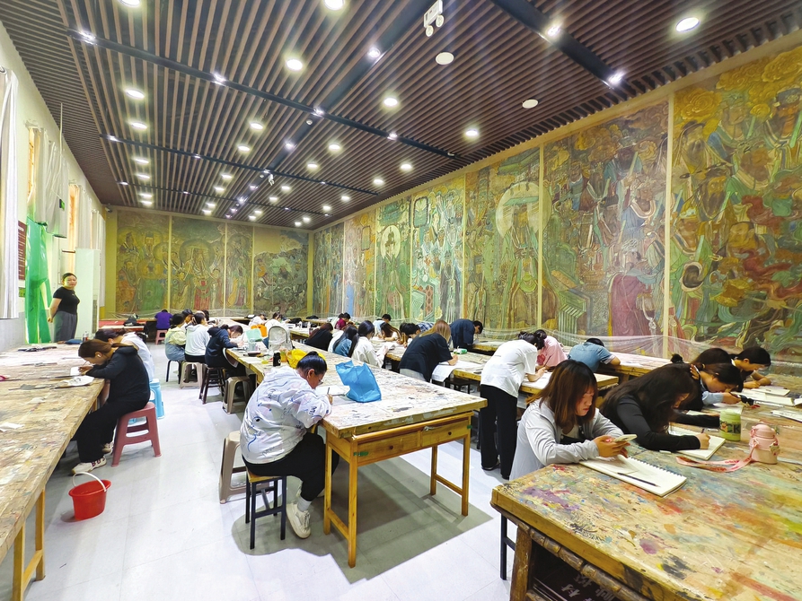 學(xué)生在永樂宮壁畫臨摹室臨摹壁畫。周明飛攝 盛夏河?xùn)|,暑熱難當(dāng),可一踏進(jìn)永樂宮的山門便頓感清涼起來。紅墻綠瓦的殿宇掩映在蒼松翠柏之中,陽光透過斑駁的樹葉,灑在朱紅色的宮墻上,光影交錯間,歲月的痕跡悄然浮現(xiàn)。 永樂宮地處晉、陜、豫三省交界的芮城縣,是我國現(xiàn)存最早、規(guī)模最大、保存最為完整的道教全真派祖庭,創(chuàng)建于公元1247年,1358年竣工。 700多個春秋在歲月的長河中流逝而去,而永樂宮的輝煌卻絲毫未被這漫長的時間所掩蓋。在永樂宮的中軸線上,坐落著四座氣勢恢宏的殿宇,它們猶如四位威風(fēng)凜凜的將軍,守護(hù)著這片神圣的土地。這組建筑群也是國內(nèi)少有保存完好的元代官式建筑群。 永樂宮的建筑鬼斧神工,壁畫更是舉世無雙。分布在龍虎殿、三清殿、純陽殿、重陽殿中1000余平方米的元代壁畫,是我國現(xiàn)存最宏偉的道教壁畫,集歷代壁畫大成,素有“東方畫廊”之美譽(yù)。其中,三清殿的壁畫是重中之重,殿內(nèi)壁畫總面積為429.5平方米,繪于東北西三面山墻,描繪了道教286位神祇朝拜元始天尊的盛大場景。 雖然壁畫上的人物眾多,但他們的服飾、發(fā)型、面容、姿態(tài)各不相同,或端莊優(yōu)雅,或豪放灑脫,或輕盈靈動。定睛細(xì)看,筆觸細(xì)節(jié)滿滿,人物栩栩如生,仿佛下一秒就會從墻壁上走下來,靜立遠(yuǎn)觀,整幅作品構(gòu)圖宏偉、氣勢磅礴、設(shè)色富麗堂皇,給人無盡的遐想。 “永樂宮壁畫藝術(shù)繼承了唐、宋繪畫傳統(tǒng),形成鮮明的時代特征,在中國繪畫史上具有承上啟下的意義。”看著殿內(nèi)壁畫,永樂宮壁畫保護(hù)研究院院長席九龍自豪地介紹,“跨進(jìn)三清殿的大門,幾乎都會被殿內(nèi)壁畫的磅礴氣勢所征服?!?/p> 聳立幾百年,征服無數(shù)世人的永樂宮,在60多年前,還進(jìn)行了一次“乾坤大挪移”,創(chuàng)造了世界文物搬遷史上的一大奇跡。 永樂宮原址位于芮城縣鄰近黃河的永樂鎮(zhèn),1957年,黃河三門峽水庫開始興建,永樂鎮(zhèn)處于工程淹沒區(qū),為了保護(hù)這一珍貴的歷史文化遺產(chǎn),國務(wù)院決定對永樂宮進(jìn)行原物原貌整體搬遷。 “那次搬遷工程,開創(chuàng)了中國大型古代建筑及壁畫搬遷保護(hù)的先河?!毕琵埥榻B,搬遷難點(diǎn)在于壁畫揭取,當(dāng)時,壁畫揭取在國內(nèi)無先例可循。“沒有經(jīng)驗(yàn),沒有外援,全靠自力更生。古建筑專家祁英濤、柴澤俊分別進(jìn)行了多次壁畫揭取、搬遷實(shí)驗(yàn),最終確定搬遷方案。歷時近10年的搬遷,不僅讓珍貴的元代建筑和壁畫完好地保留下來,也為日后文物古建搬遷提供了寶貴經(jīng)驗(yàn)?!?/p> 搬遷雖讓永樂宮得以重生,但由于年代久遠(yuǎn),壁畫中的一些色彩、人物的配飾已看不清楚。為了將壁畫藝術(shù)更好地呈現(xiàn)于世人,研究人員采用了先進(jìn)的數(shù)字影像技術(shù),讓原本靜態(tài)的壁畫成為動態(tài)的影像。席九龍介紹:“我們在本體保護(hù)的基礎(chǔ)上,運(yùn)用多種數(shù)字化保護(hù)手段,比如3D修復(fù)、打印,VR、AR等數(shù)字影像技術(shù),以及三維動畫、全景漫游等,讓永樂宮壁畫活了起來?!?/p> 700多年前,永樂宮的畫師一筆筆繪出傳世經(jīng)典。如今,數(shù)字化技術(shù)讓滿壁丹青又煥發(fā)了新的光彩。2021年,3D打印《朝元圖》亮相山西博物院特展。在隨后的兩年多時間里,特展走進(jìn)揚(yáng)州、深圳、青島等多個城市,數(shù)字化、動態(tài)化、交互式、沉浸式展陳技術(shù),幫助觀眾多視角、多感官了解永樂宮壁畫的精妙。 精美絕倫的壁畫、珍貴的元代官式建筑、世界文物搬遷史上的奇跡……擁有豐富旅游資源,如何吸引更多游客和求學(xué)者前來? 近年來,芮城縣持續(xù)加強(qiáng)永樂宮周邊環(huán)境整治,以項(xiàng)目建設(shè)助力永樂宮文化和旅游深度融合發(fā)展,如今,在永樂宮隔壁,占地約457.1畝的芮城縣文化創(chuàng)意園正拔地而起,該項(xiàng)目涵蓋文物保護(hù)、壁畫教學(xué)、臨摹寫生、旅游休閑等多個功能區(qū)域。未來,芮城縣還將積極采取現(xiàn)代技術(shù)手段,結(jié)合文物史料,通過VR等新媒介技術(shù),多角度融入演繹場景,打造具有“展覽、教育、旅游、文化、休閑、體驗(yàn)”功能的壁畫展示中心,切實(shí)滿足群眾多元文化需求。 漫步永樂宮,感受時光流淌,仿佛每一步都踏在歷史的脈搏上。在這里,古老與現(xiàn)代相互交織,前衛(wèi)與滄桑彼此碰撞。一幅集厚重歷史文化沉淀和自然風(fēng)光于一體的文旅融合畫卷正徐徐繪就。 本報記者周明飛 (責(zé)任編輯:梁艷) |