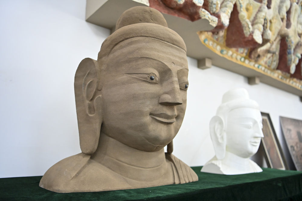 這是4月16日在云岡研究院數(shù)字化保護(hù)中心展廳拍攝的3D打印佛像模型。云岡研究院還通過高校合作、對(duì)外交流等方式