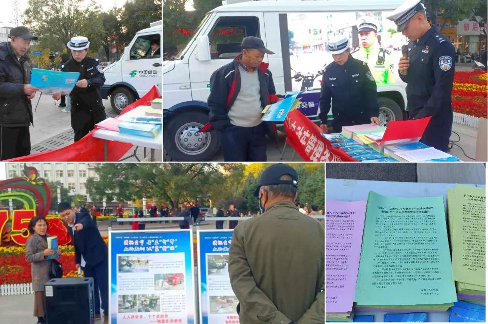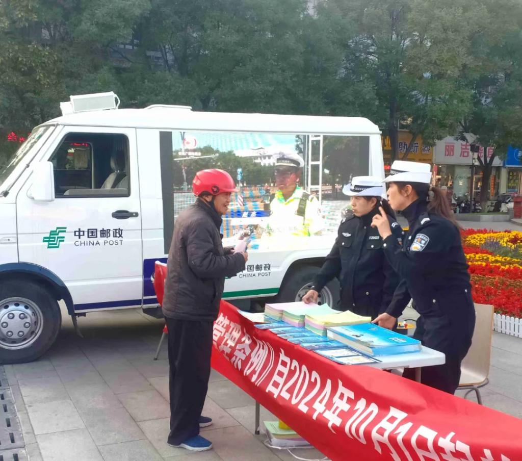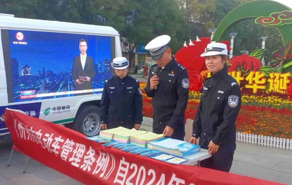 在人頭攢動的廣場上,“一盔一帶”宣傳展板、警郵直播車大屏幕吸引了過往群眾駐足觀看。“大媽,新修訂的《忻州市電動車管理條例》已于本月1日起開始施行,您知道嗎?”“大叔,您這舊的電動自行車要抓緊時間登記備案、辦理臨時牌照,咱忻府區(qū)24個警郵合作電動自行車便民登記服務(wù)網(wǎng)點都能辦理過渡期臨牌”“騎乘電動自行車必須要佩戴安全頭盔,不能闖紅燈、逆行......”
