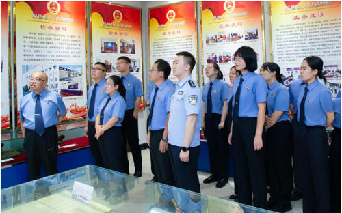 在實(shí)物陳列展區(qū),檢察干警參觀了歷任檢察長(zhǎng)肖像墻、不同歷史時(shí)期的檢徽、手寫起訴書(shū)原件與打印文書(shū)、陳列疊放整齊的檢察制服,生動(dòng)串聯(lián)起檢察事業(yè)的時(shí)代發(fā)展脈絡(luò),深刻領(lǐng)會(huì)時(shí)代變遷中檢察干警的初心傳承與使命堅(jiān)守。在榮譽(yù)展廳,多面鮮紅的錦旗承載著人民群眾對(duì)保德縣檢察院工作的真摯認(rèn)可,陳列于玻璃展柜的各類榮譽(yù),生動(dòng)詮釋了保德檢察人接續(xù)奮斗、守護(hù)正義的使命榮光。全體檢察干警紛紛表示,要傳承優(yōu)良傳統(tǒng),以銳意進(jìn)取的姿態(tài)攻堅(jiān)克難,在司法實(shí)踐中勇攀高峰。